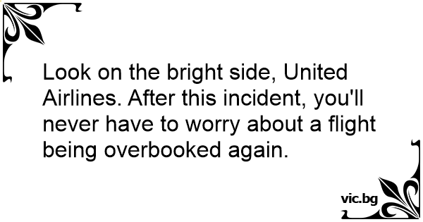 Look on the bright side, United Airlines. After this incident, you'll never have to worry about a flight being overbooked again.