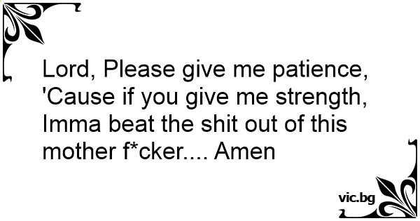 Lord, Please give me patience, 'Cause if you give me strength, Imma beat the shiт out of this mother f*cker.... Amen