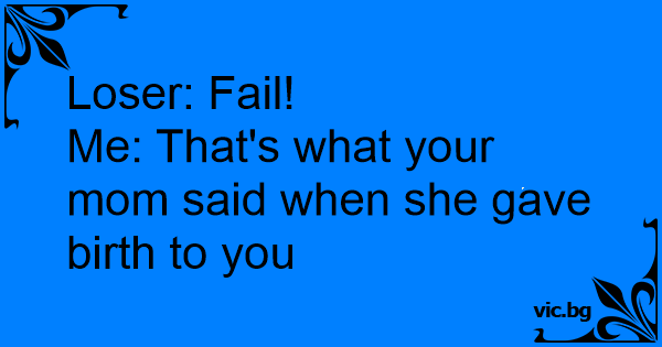 Loser: Fail!<br />Me: That's what your mom said when she gave birth to you