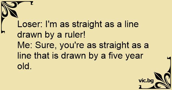 Me: Sure, you're as straight as a line that is drawn by a five year old.