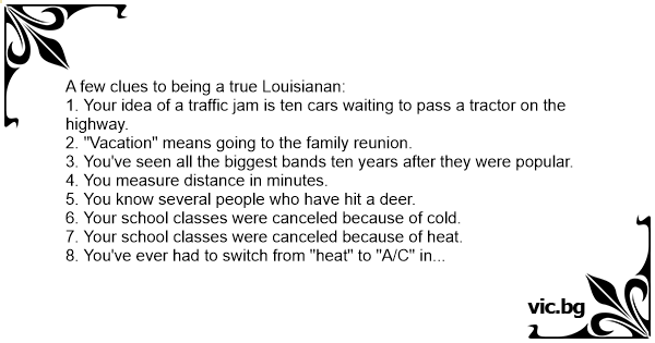1. Your idea of a traffic jam is ten cars waiting to pass a tractor on the highway.