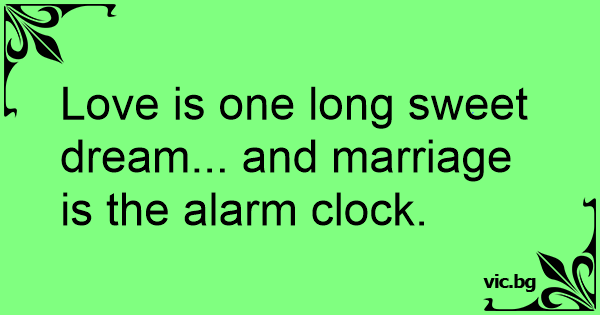 Love is one long sweet dream... and marriage is the alarm clock. 0 0 0 Marriage and Family Jokes Love Jokes