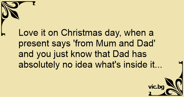 Love it on Christmas day, when a present says 'from Mum and Dad' and you just know that Dad has absolutely no idea what's inside it...