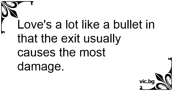 Love's a lot like a bullet in that the exit usually causes the most damage.