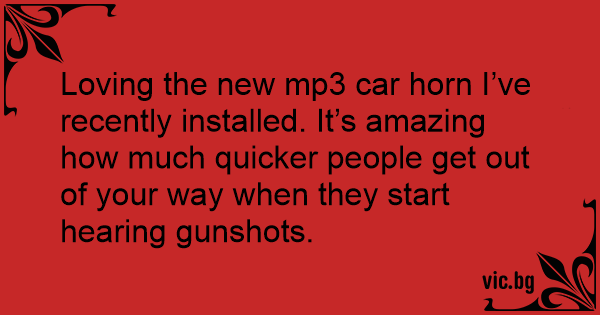 Loving the new mp3 car horn I’ve recently installed. It’s amazing how much quicker people get out of your way when they start hearing gunshots.