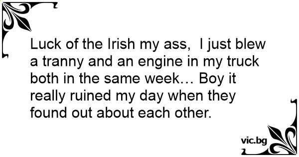 Luck of the Irish my аss, I just blew a тrаnny and an engine in my truck both in the same week… Boy it really ruined my day when they found out about each other.