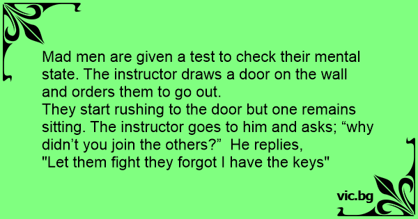 Mad men are given a test to check their mental state. The instructor draws a door on the wall and orders them to go out.