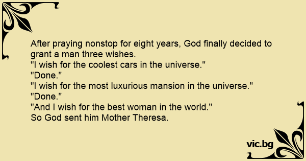 After praying nonstop for eight years, God finally decided to grant a man three wishes.