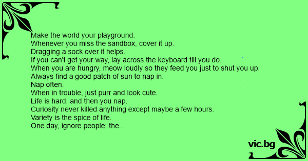 Always give generously; a bird or rodent left on the bed tells them, "I care".