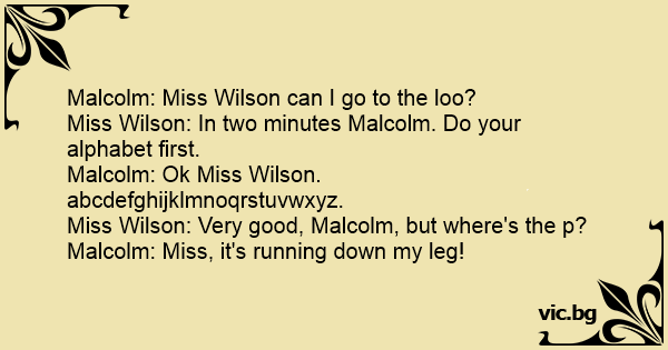 Malcolm: Ok Miss Wilson. abcdefghijklmnoqrstuvwxyz.