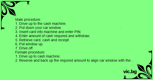 1. Drive up to cash machine.
