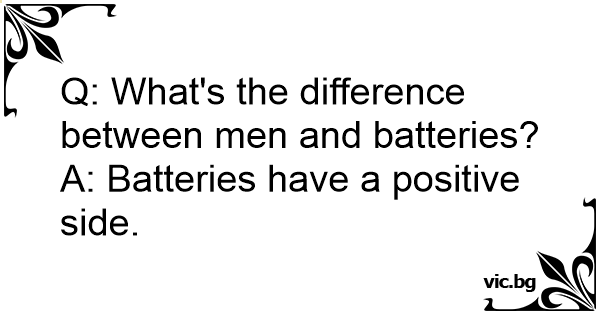 Hvad er forskellen på et batteri og en kvinde?? Hvad er forskellen på et batteri og en kvinde? - Batteriet har både en positiv og en negativ side.