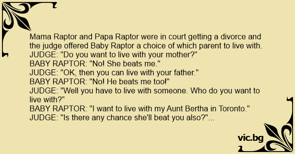 Mama Raptor and Papa Raptor were in court getting a divorce and the judge offered Baby Raptor a choice of which parent to live with.