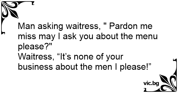 Man asking waitress, " Pardon me miss may I ask you about the menu