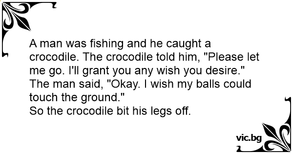 Upeca covek zlatnu ajkulu a ona mu kaze: ''Pusti me i ispunicu ti jednu zelju'' ''Zelim da mi ku... bude do zemlje'' I ajkula mu odgrize noge.