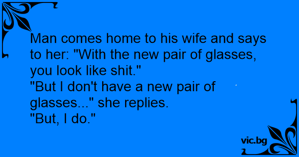 Man comes home to his wife and says to her: "With the new pair of glasses, you look like shiт."