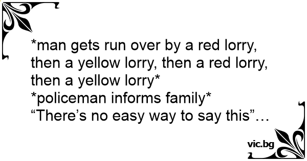 *man gets run over by a red lorry, then a yellow lorry, then a red lorry, then a yellow lorry*