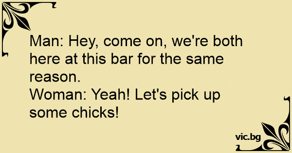 Woman: Yeah! Let's pick up some chicks!