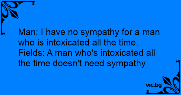 Fields: A man who's intoxicated all the time doesn't need sympathy
