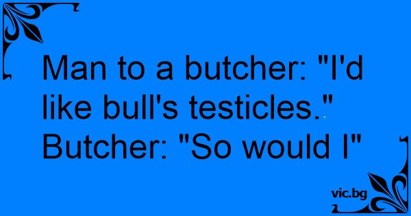 Man to a butcher: "I'd like bull's testicles."