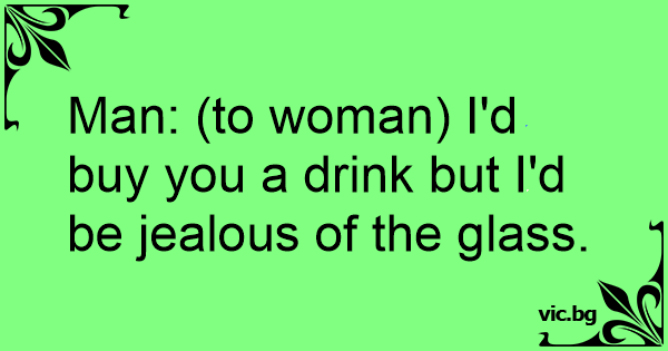 Man: (to woman) I'd buy you a drink but I'd be jealous of the glass.