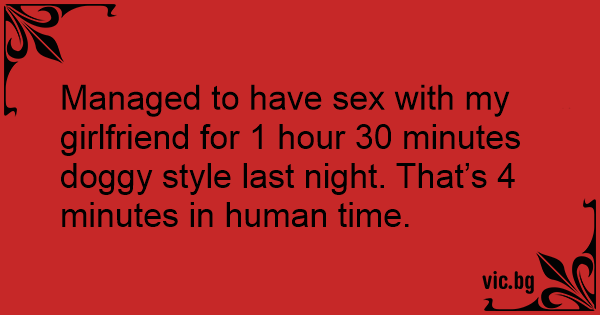 Managed to have sеx with my girlfriend for 1 hour 30 minutes doggy style last night. That’s 4 minutes in human time.