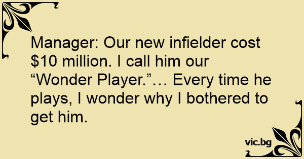 Manager: Our new infielder cost $10 million. I call him our “Wonder Player.”… Every time he plays, I wonder why I bothered to get him.