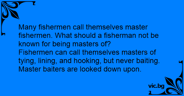 Fishermen can call themselves masters of tying, lining, and hooking, but never baiting. Master baiters are looked down upon.