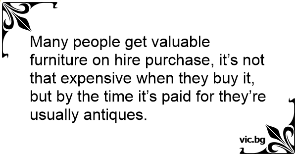 Many people get valuable furniture on hire purchase, it’s not that expensive when they buy it, but by the time it’s paid for they’re usually antiques.