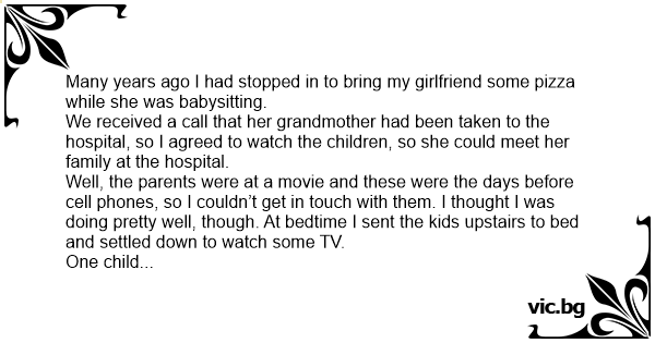 Many years ago I had stopped in to bring my girlfriend some pizza while she was babysitting.