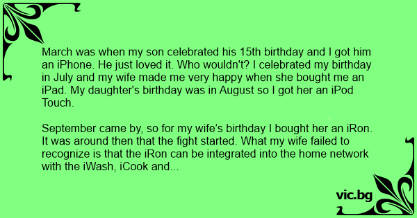 September came by, so for my wife’s birthday I bought her an iRon. It was around then that the fight started. What my wife failed to recognize is that the iRon can be integrated into the home network with the iWash, iCook and iClean.