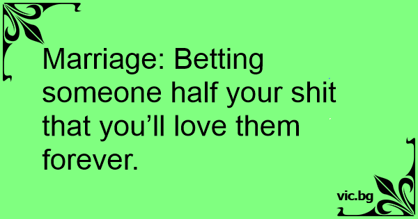 Marriage: Betting someone half your shiт that you’ll love them forever.