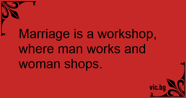 Marriage is a workshop, where man works and woman shops.