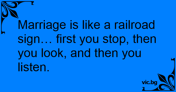 Marriage is like a railroad sign… first you stop, then you look, and then you listen.
