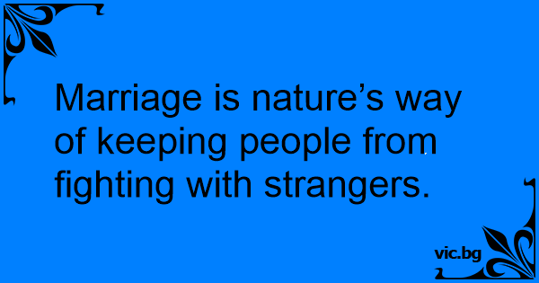 Marriage is nature’s way of keeping people from fighting with strangers.