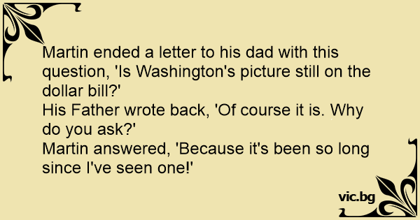 Martin ended a letter to his dad with this question, 'Is Washington's picture still on the dollar bill?'