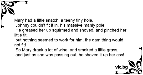 Mary had a little snатсh, a teeny tiny hole,