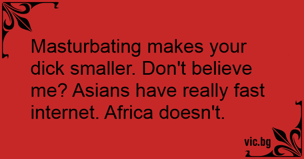 Маsтurватing makes your diск smaller. Don't believe me? Asians have really fast internet. Africa doesn't.