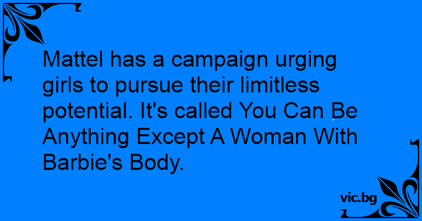 Mattel has a campaign urging girls to pursue their limitless potential. It's called You Can Be Anything Except A Woman With Barbie's Body.