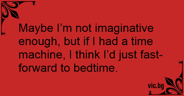 Maybe I’m not imaginative enough, but if I had a time machine, I think I’d just fast-forward to bedtime.