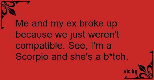 Me and my ex broke up because we just weren't compatible. See, I'm a Scorpio and she's a b*tch.