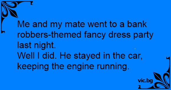 Me and my mate went to a bank robbers-themed fancy dress party last night.