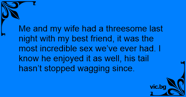 Me and my wife had a тhrееsоме last night with my best friend, it was the most incredible sеx we’ve ever had. I know he enjoyed it as well, his tail hasn’t stopped wagging since.