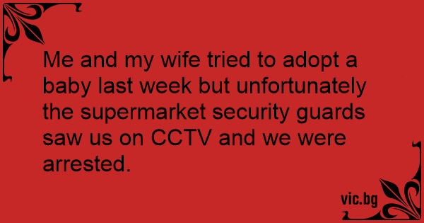 Me and my wife tried to adopt a baby last week but unfortunately the supermarket security guards saw us on CCTV and we were arrested.