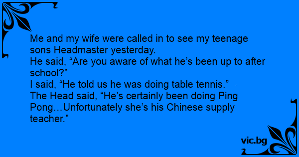 The Head said, “He’s certainly been doing Ping Pong…Unfortunately she’s his Chinese supply teacher.”