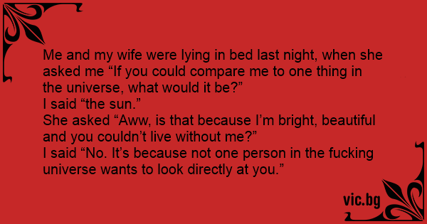 Me and my wife were lying in bed last night, when she asked me “If you could compare me to one thing in the universe, what would it be?”