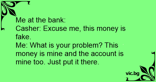 Me at the bank: Casher:...