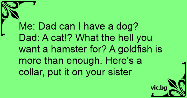 Dad: A cat!? What the hеll you want a hamster for? A goldfish is more than enough. Here's a collar, put it on your sister