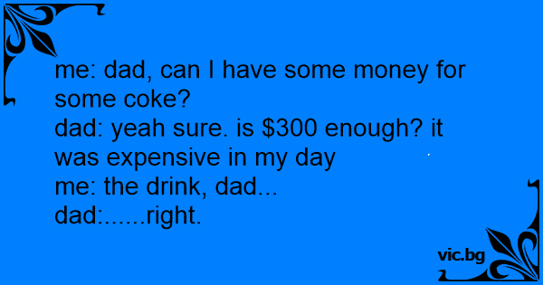 me: dad, can I have some money for some coke?