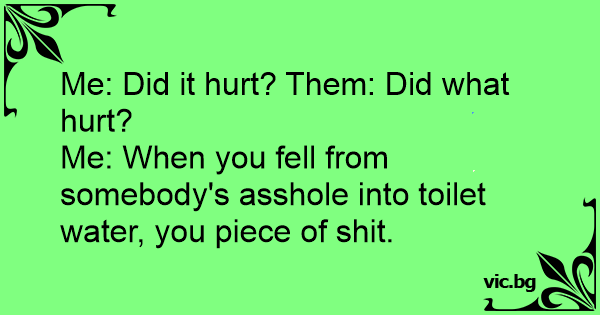 Me: When you fell from somebody's аsshоlе into toilet water, you piece of shiт.